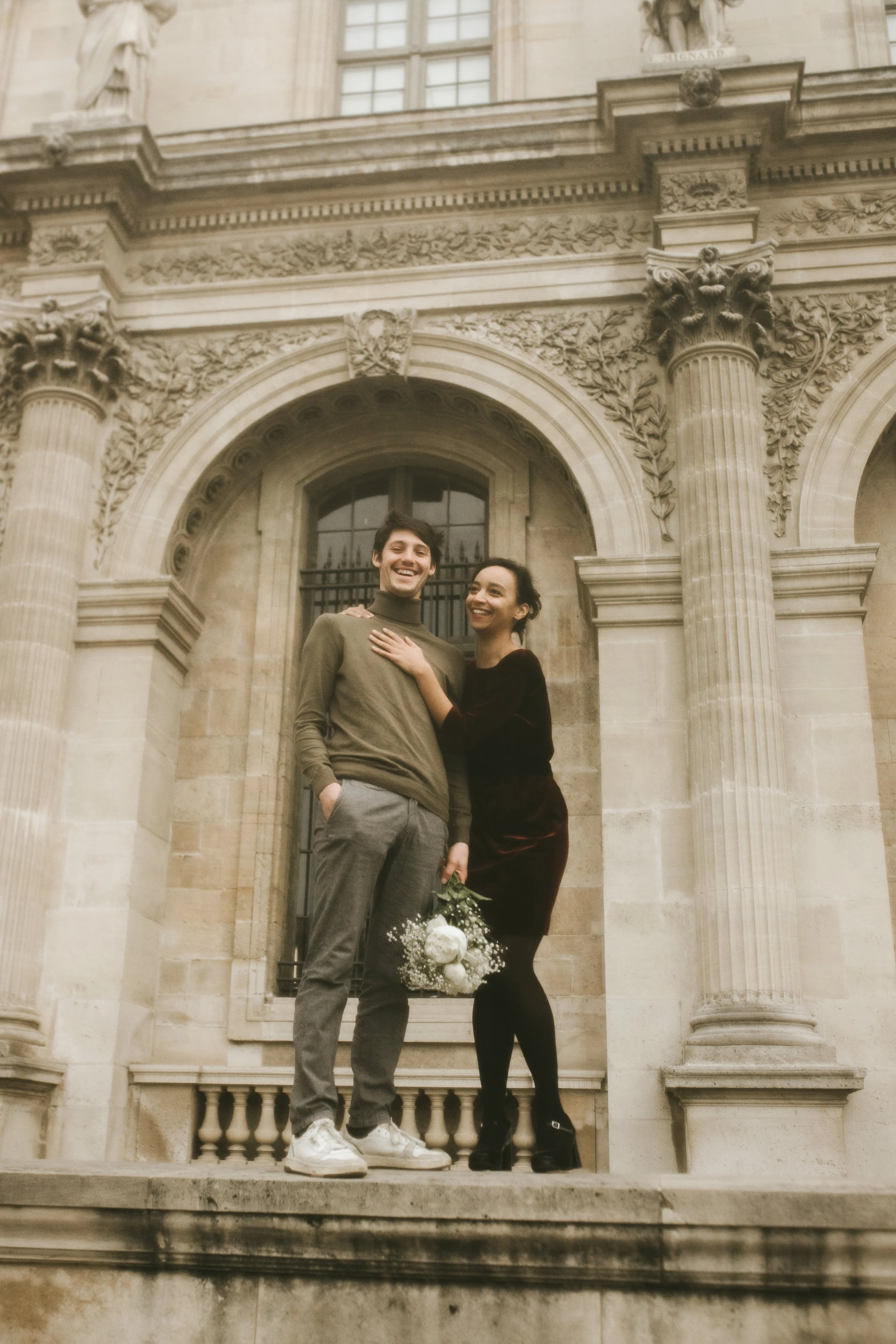 After their courthouse ceremony I met with Killian and Melissa at their place to get ready for a celebratory walk through Paris. They bought a bouquet of flowers from a local corner store and we spent the afternoon at Palais Royal and the Louvre before stopping by their new home they are renovating. This laidback approach shows that love shines bright in life’s simplest moments. The day is your oyster, celebrate it in the most authentic way to you.